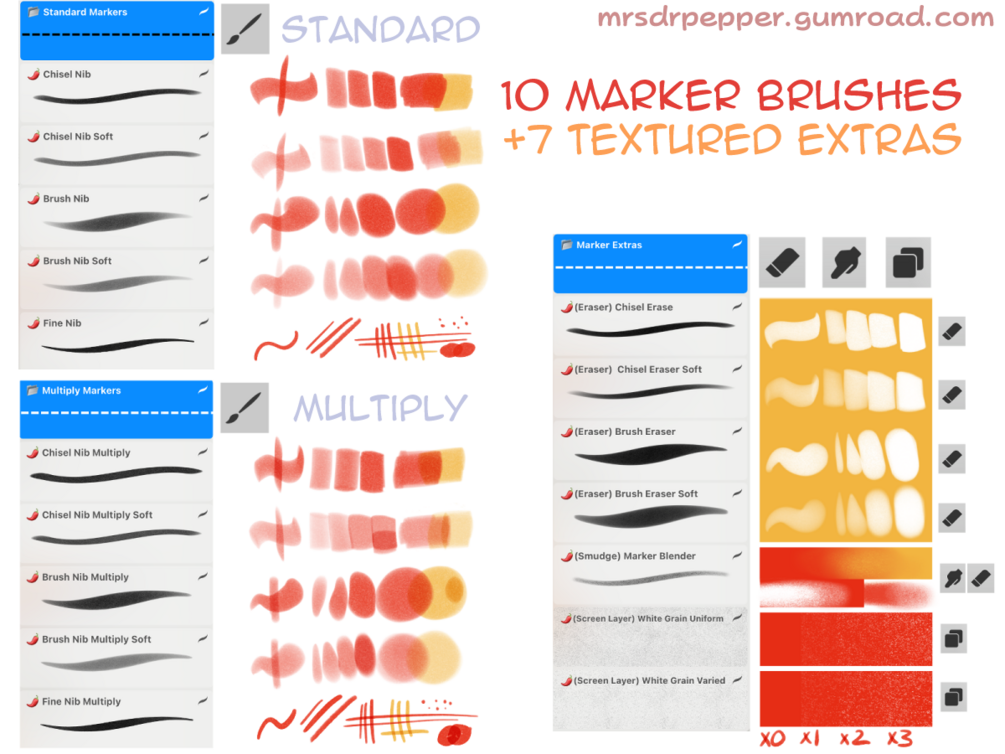 Here due to popular demand - my marker style brushes have found new life in the Procreate app! These digital brushes for Procreate mimic alcohol-based markers, but for the price of a single big-name (Copic Sketch) marker.